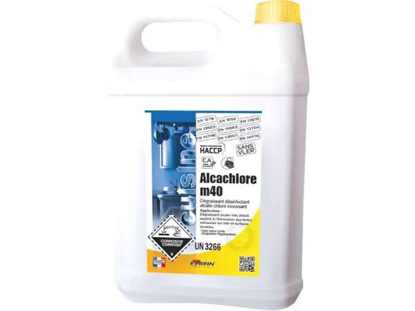 Dégraissant désinfectant alcalin chloré moussantTaux de dilution 0.5% à 6%HYDROXYDE DE SODIUM (CAS1310-73-2)2 mg/m3