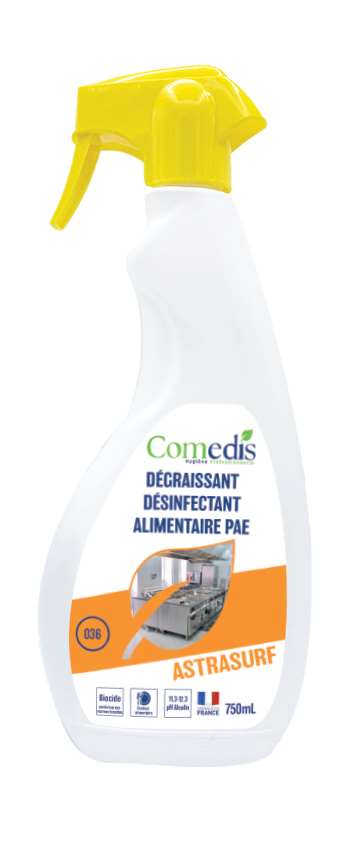 Nettoyant, dégraissant et désinfectant des surfaces alimentaires. Utilisation très facile car il est prêt à l’emploi. Convient pour éliminer toutes souillures grasses des sols, murs, plans de travail, chambres froides, équipements, ustensiles, pour les matériels de transport, de préparation et de transformation des denrées alimentaires et produits d’origine animale ...