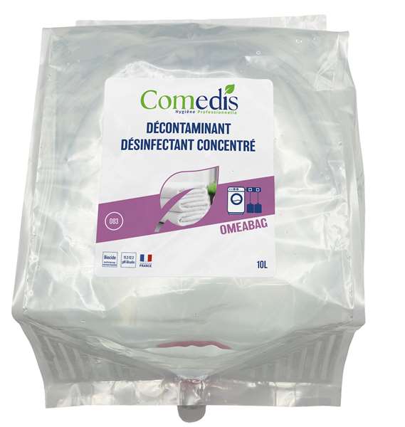 Désinfectant décontaminant liquide concentré pour système de dosage automatique. Désinfectant et décontamination du linge qui s’utilise à basse température sur tout type de linge, y compris les textiles délicats et couleurs, dans les cycles de lavage en phase de prélavage (décontamination) ou en phase de rinçage (désinfection). Peut également s’utiliser en trempage. De par sa forte concentration en matières actives, s’utilise en eaux douces et très dures. Couvre un large spectre antimicrobien grâce à une association de 2 principes actifs synergiques. Agréablement parfumé.