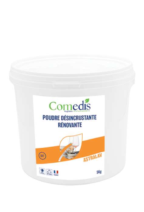 Poudre destinée à la rénovation et à la désincrustation de la vaisselle en trempage ou lors du lavage en machine.