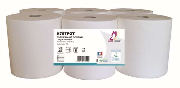 Rouleau essuie mains laize20cm 240m en continu pure cell. blanche 2plis gaufré collé pack de 6